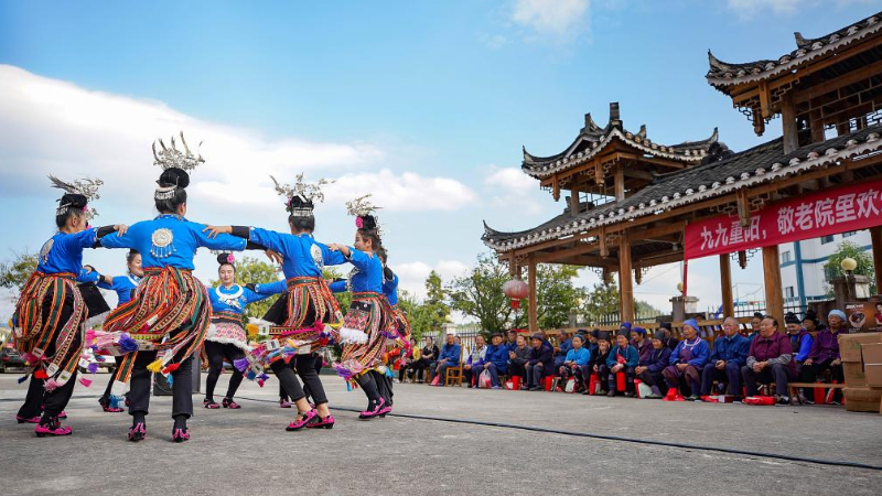11月1日,果农在贵州省开阳县南龙乡土香村柑橘种植基地采摘、分拣柑橘(无人机照片)。新华社发(袁福洪摄)