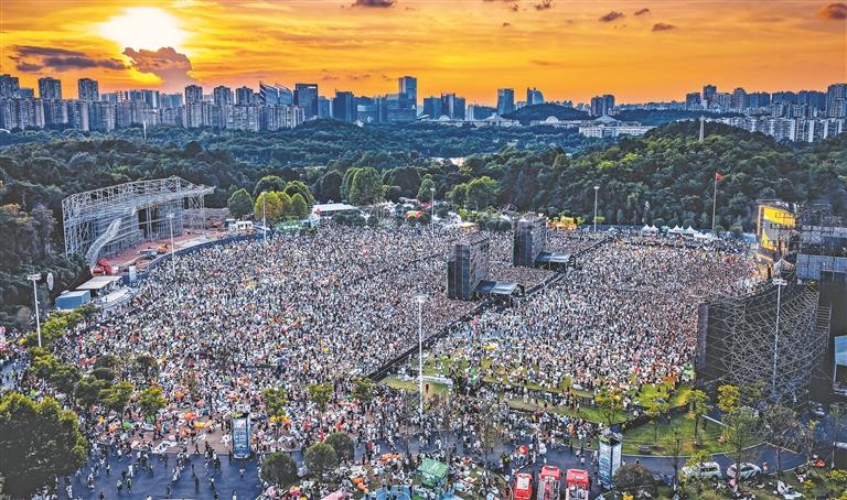 据不完全统计,8月9日当天的主要文娱演出达23场。“真的要犯选择困难症!”广西游客罗敏笑言,这些演出都很热门,看运气抢到哪场演出的票就看哪一场。“很幸运买到2025Z纪元银河左岸音乐节的票,早上6点的高铁到贵阳,先去嗦了碗牛肉粉,就过来抢占有利位置,在夕阳下的草地上惬意躺平,吹着清凉的晚风悠然享受音乐,这个周末100分。”罗敏说。