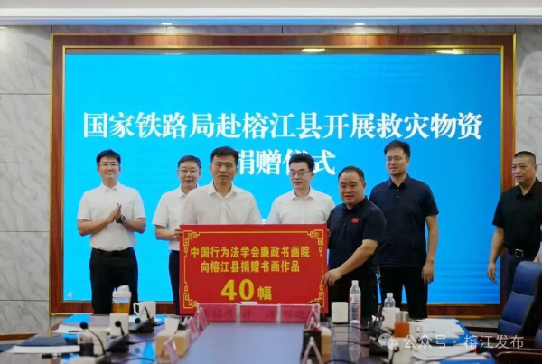今年6月,榕江县遭遇特大洪水,直接经济损失超过百亿元。洪水无情,人间有爱。中国行为法学会廉政书画院心系榕江,急榕江之所急,帮榕江之所需,一方面积极组织书画家们寄情笔墨,精心创作以传承廉政文化、弘扬“村超”精神为主题的书画作品,用艺术讲好大美榕江的故事,鼓舞灾区人民树立重建家园的信心;另一方面积极协助国家铁路局,动员组织北京润华公益基金会及浙江骁龙交通科技公司等爱心企业,向榕江县捐赠了价值860.9万元的援建物资,鼎力支持榕江灾后重建和“村超”文体事业持续健康发展。