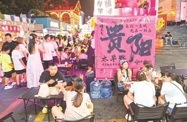 夏日夜幕下的贵阳市太平路街区,游客在凉爽的晚风中品贵州美食,饮贵阳精酿,感受浓浓烟火气。乔啟明 摄