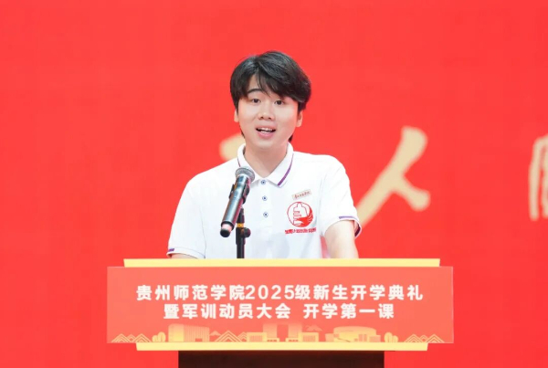 教育是一场温暖的修行,是用生命影响生命,用智慧点燃梦想。教师代表、教务处处长、创新创业学院执行院长杜宏博教授,贵阳市南明小学校长、贵州省优秀教师、优秀校友唐银乔,在校生代表、创新创业学院2022级学生段迪,新生代表、数学与大数据学院2025级李昱霏及军训教官代表、乌当区人武部朱垚睿依次发言。