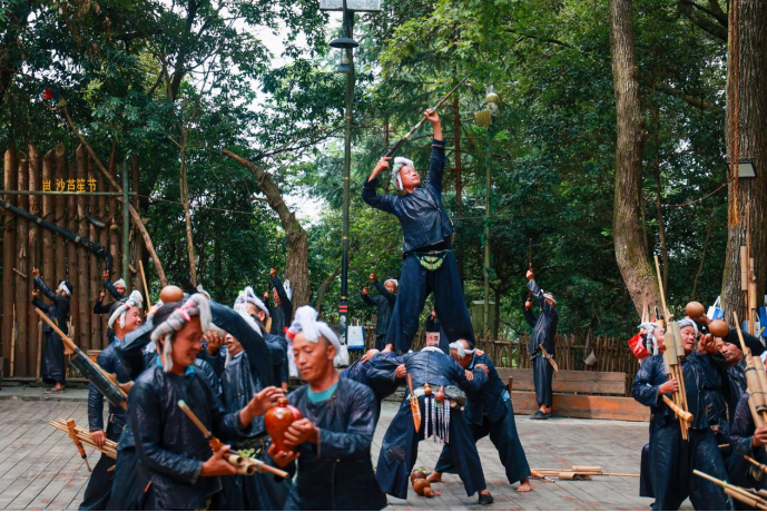 而在岜沙苗寨,体验官们则亲身感受了苗族传统文化的独特魅力。他们跟随寨中枪手学习火枪射击技巧,体验镰刀剃头这一古老的成人礼仪式,还参与了芦笙舞表演,与苗族同胞们一同载歌载舞。“岜沙苗寨的男人们腰挎砍刀、肩扛火枪,保留着最原始的生活方式,让我们仿佛穿越回了千年之前。”体验官雨宗林感叹道。
