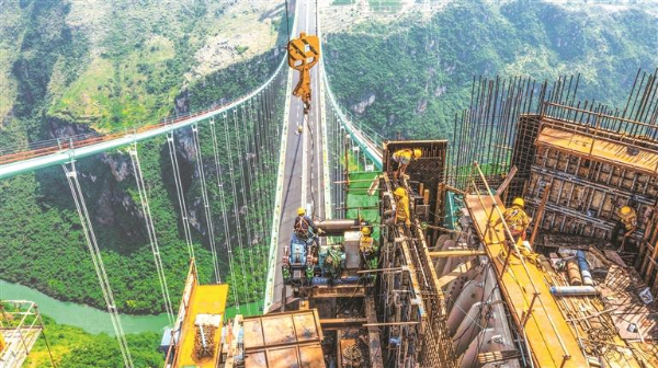 大桥之上,850米长的悬空观光廊道、全球海拔最高的桥顶咖啡馆即将投用,蹦极、高空荡绳等极限项目吸引全国游客。