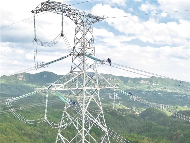 南方电网贵州毕节供电局输电管理二所工作人员,对新建的500千伏乌撒至奢香二回线路E099-E173段开展走线验收作业,以保障线路投运后的安全稳定运行。 刘凯 摄(影像贵州)